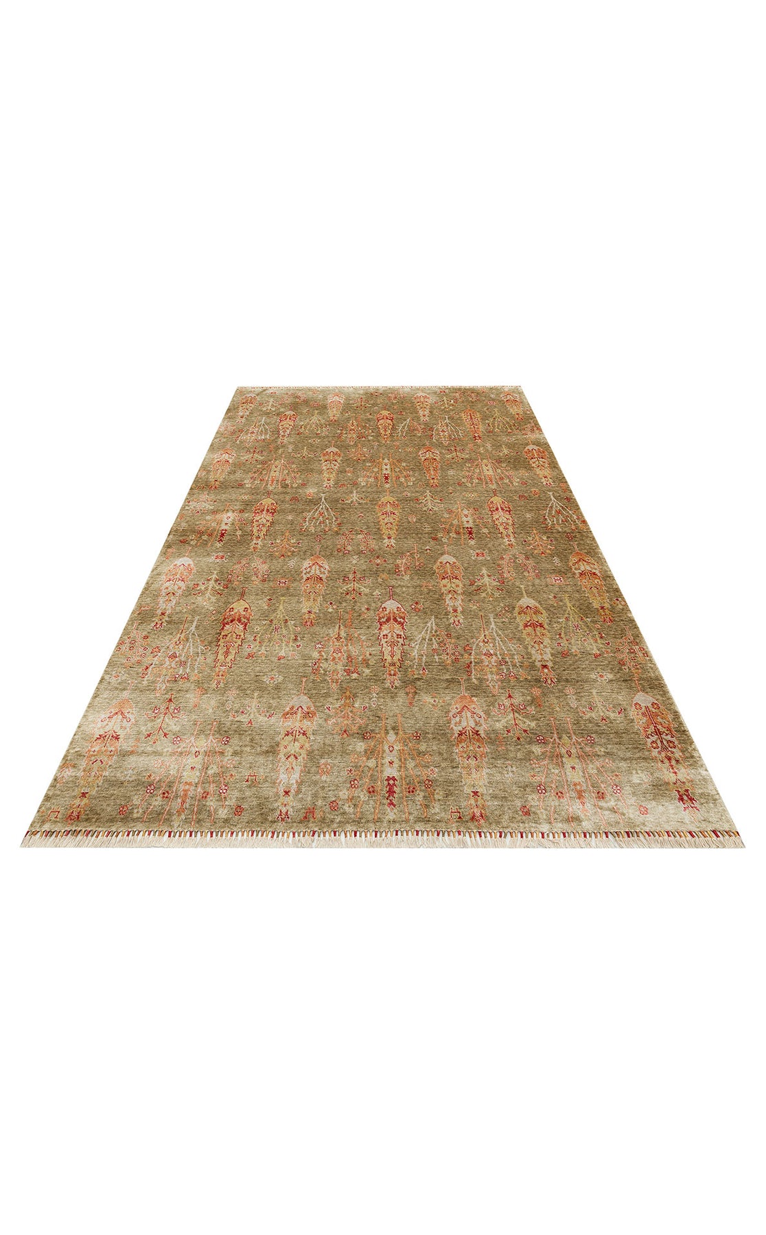 Milas 08 Green Autumn Uşaklı Kadınların Yoğun El Emeği ile Dokuduğu %100 Doğal Bambu Tezgah Halısı