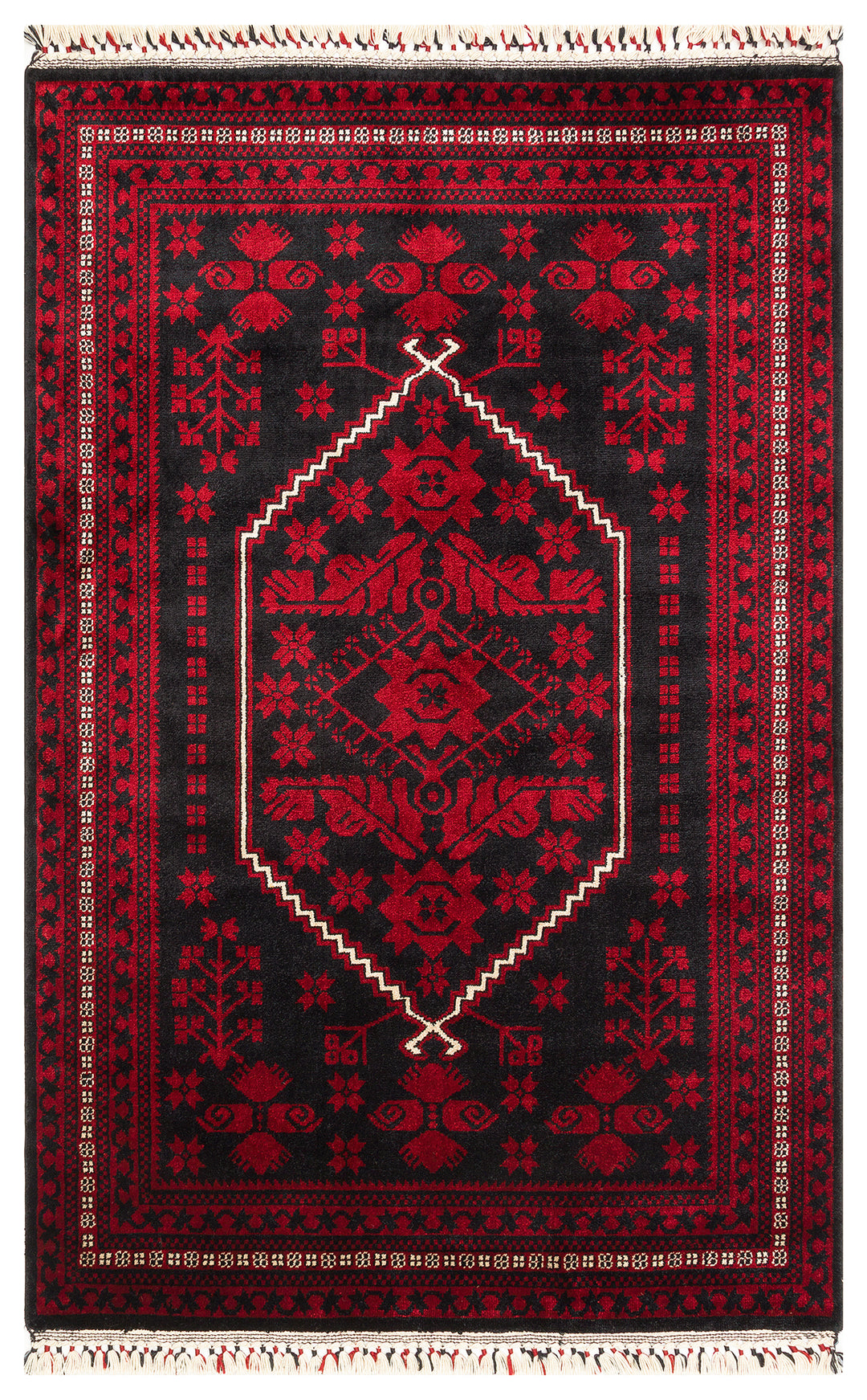 Historic 961 Red Afgan Desenli El Emeği Ile Özel Tezgahlarda Üretilen Bambu Uşak Halısı