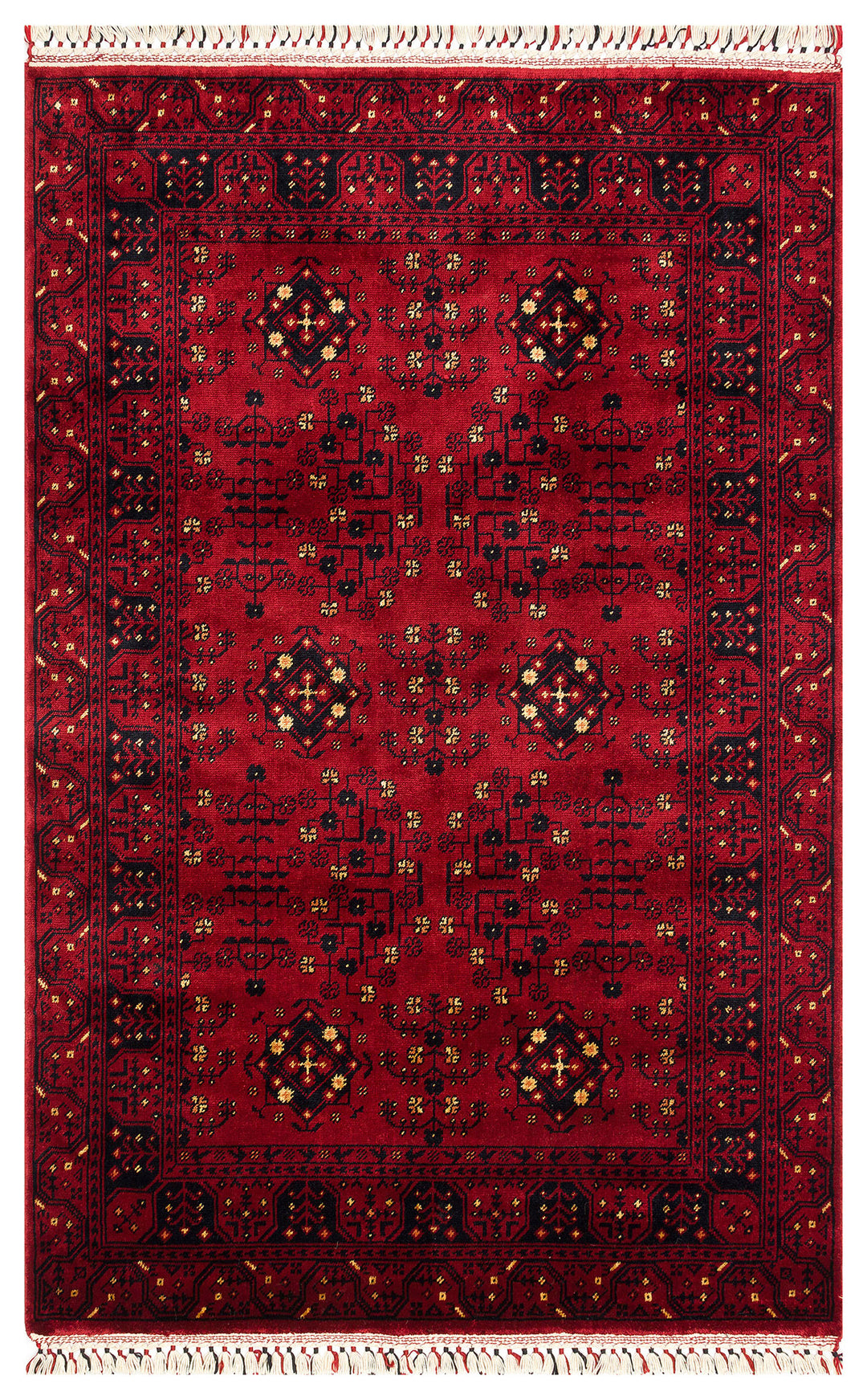 Historic 960 Red Afgan Desenli El Emeği Ile Özel Tezgahlarda Üretilen Bambu Uşak Halısı