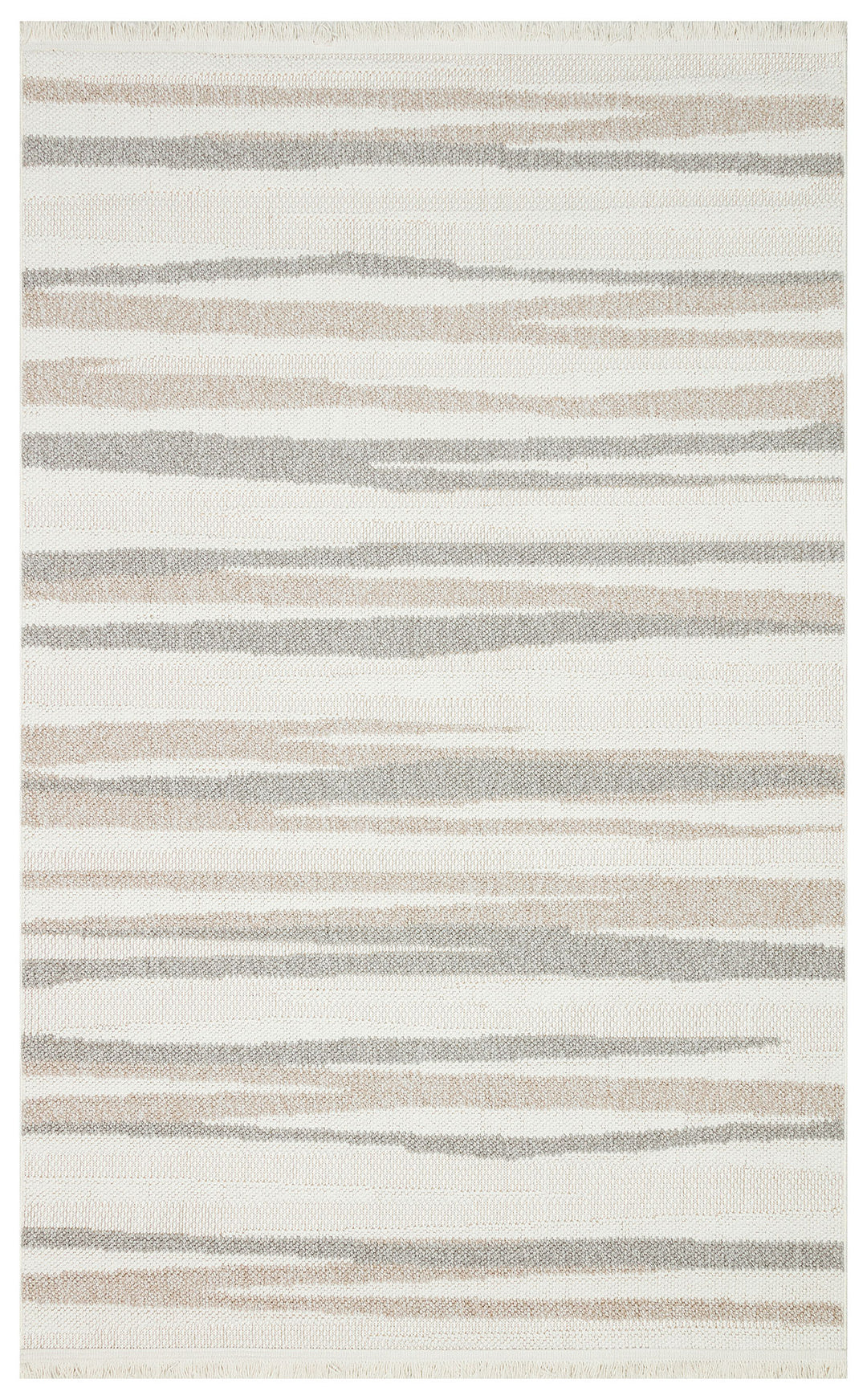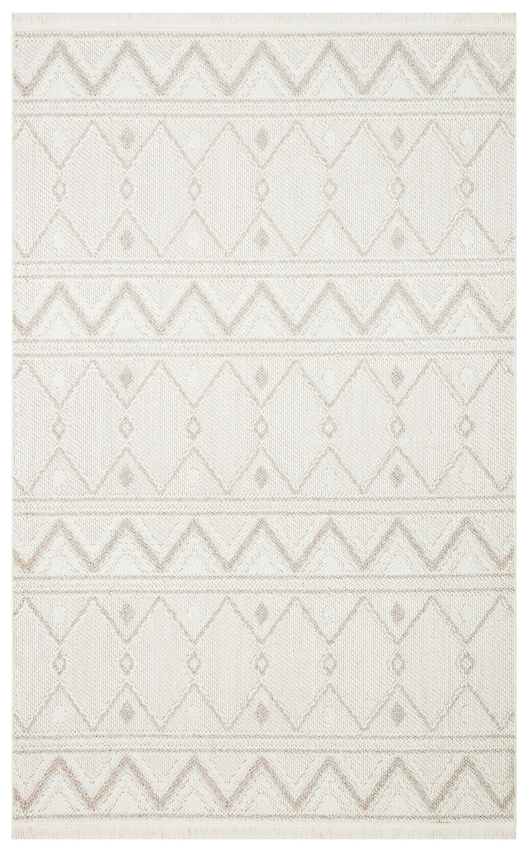 Ohrid 02 White Beige Bukle Dokuma Yapısında Hav Toz Vermeyen Yumuşak Koridor, Salon, Mutfak Halısı