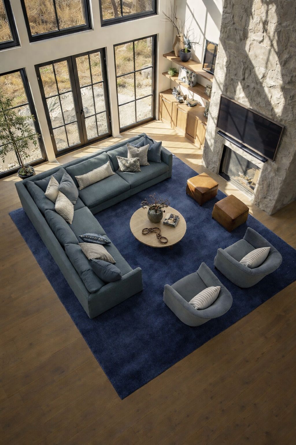 Porto Midnight Blue, %100 viskon kullanılarak üretilmiş, Modern Tasarımlı Sade ve Şık Salon Halısı