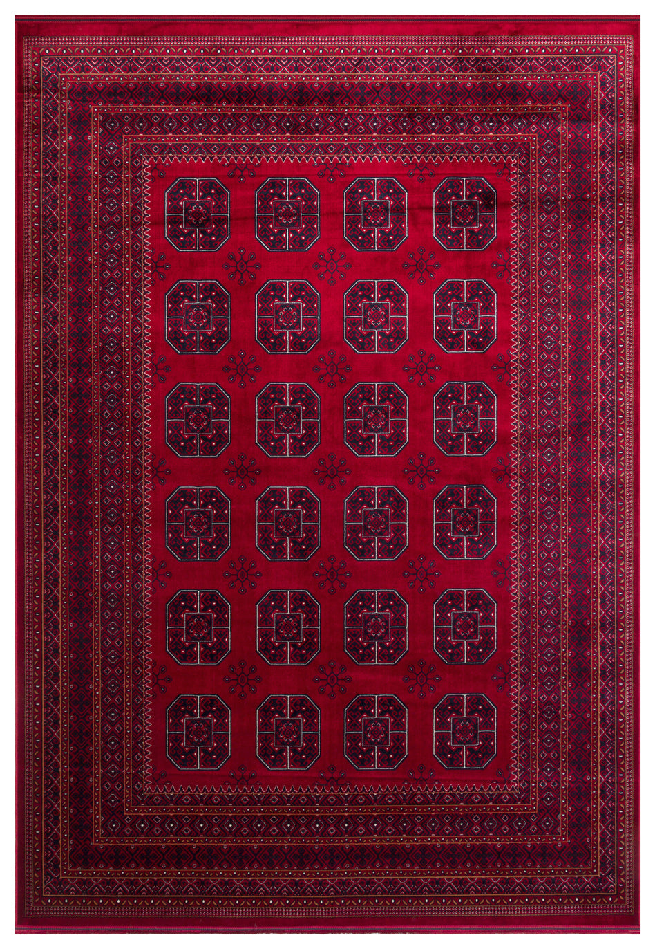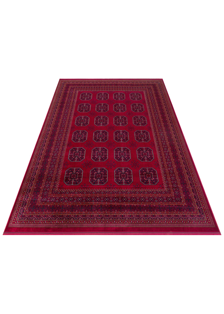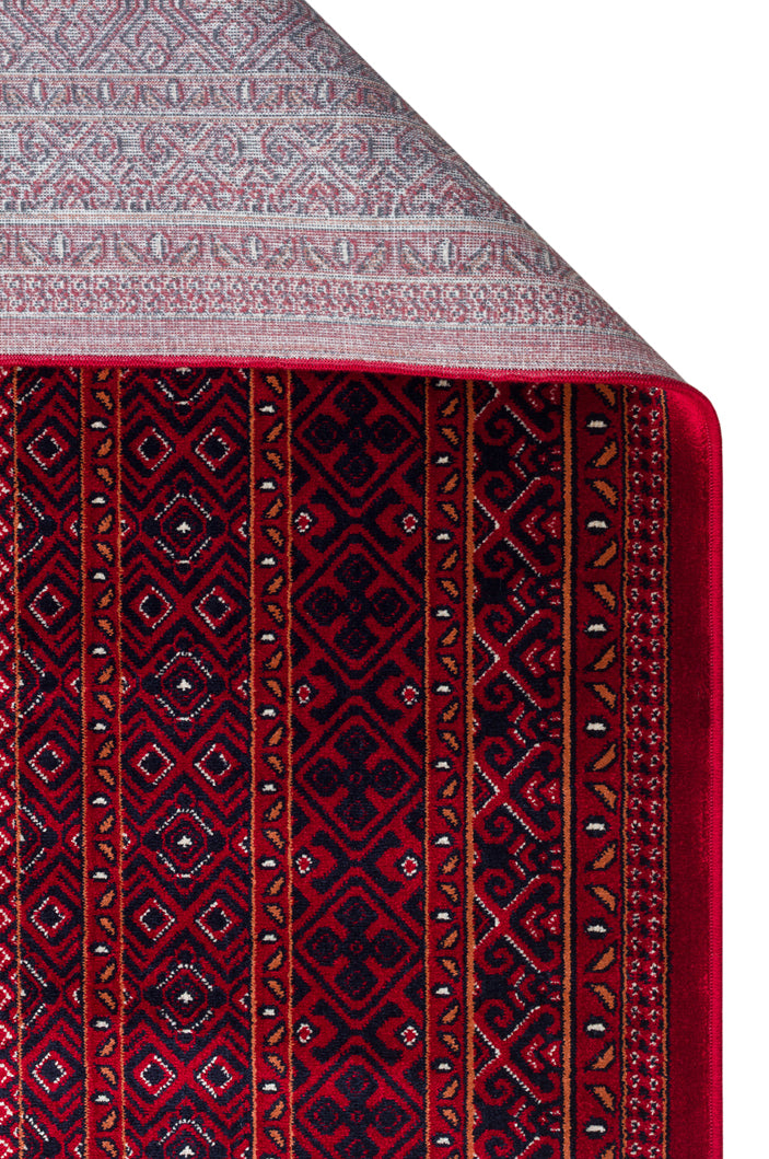 Buhara 02 Red Afgan Desenli Viskon ile Üretilen Parlak ve Yumuşak Doku, Tabanı Kaydırmaz İnce Halı