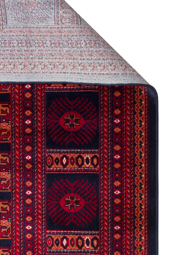 • Afgan desenlerinden ilham alınarak hazırlanmış bu özel halı, viskon ipliklerle üretilmiş parlak ve yumuşak dokusuyla yaşam alanlarınıza zarif bir şıklık katar; Kaydırmaz tabanı sayesinde güvenli kullanım sağlar, ince yapısı ile kolay taşınabilir ve pratik bir çözüm sunar; Parlak yüzeyi, ışığı yansıtarak desenlerin daha belirgin görünmesini sağlar; Yumuşak dokusu sayesinde adım attığınızda konforlu bir his verir; Hem salon hem oturma odası hem de farklı yaşam alanlarında dekoratif bir uyum yakalamanızı sağlar; Modern ve klasik dekorasyon stillerine rahatlıkla uyum göstererek uzun ömürlü ve estetik bir kullanım vadeder;