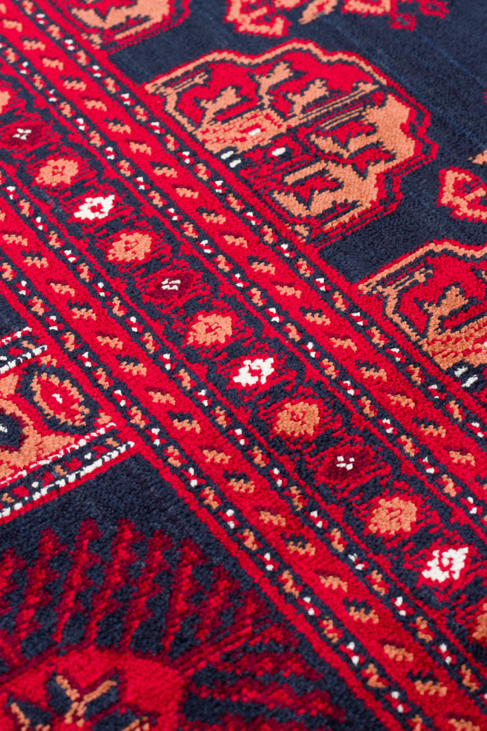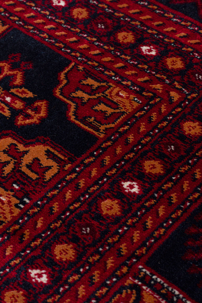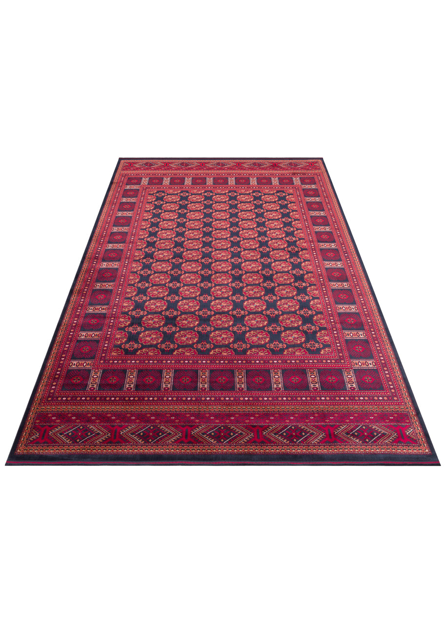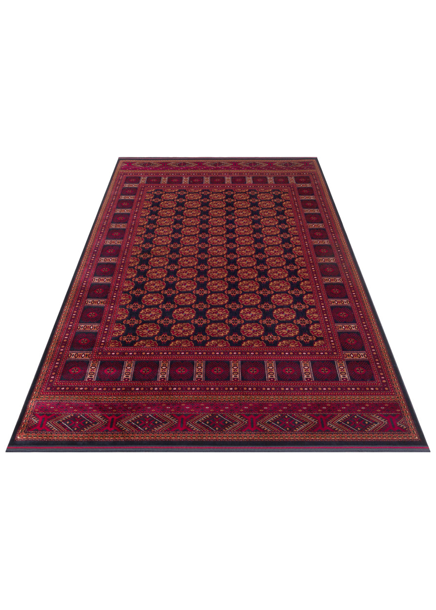 Buhara 03 Navy Afgan Desenli Viskon ile Üretilen Parlak ve Yumuşak Doku, Tabanı Kaydırmaz İnce Halı