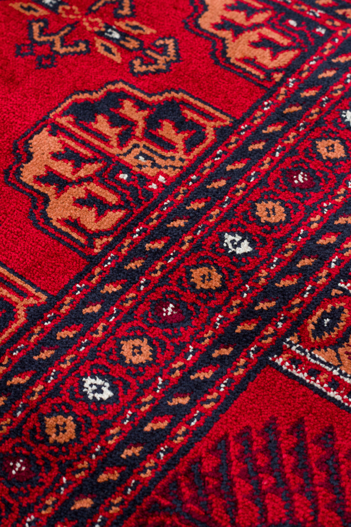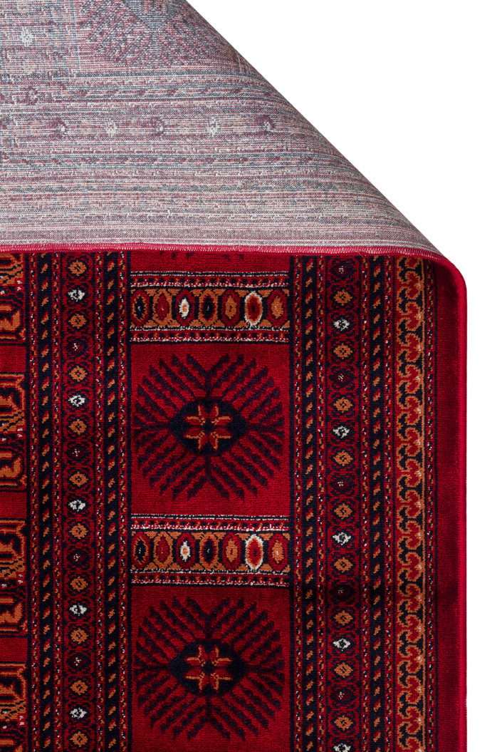 Buhara 03 Red Afgan Desenli Viskon ile Üretilen Parlak ve Yumuşak Doku, Tabanı Kaydırmaz İnce Halı